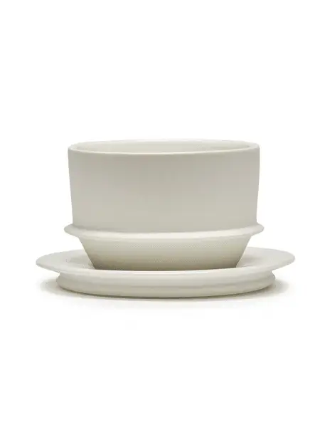 Dit onderschoteltje is geïnspireerd op authentieke pottenbakkerij en is met uitzonderlijk vakmanschap vervaardigd. De tweetonige afwerking van matte en hoogglans porselein geeft het item een unieke uitstraling.